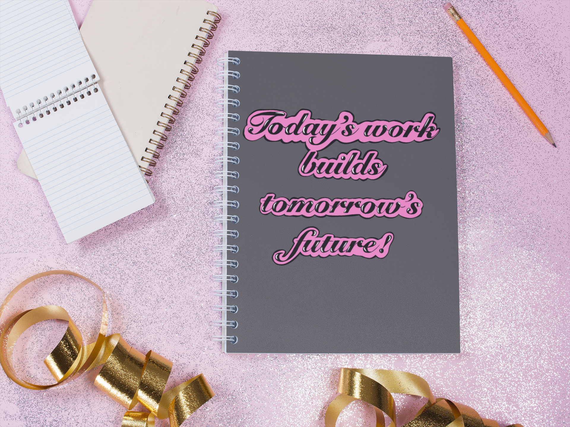 Inspirational Spiral Notebook — "Today's Work Builds Tomorrow's Future" Pink Script